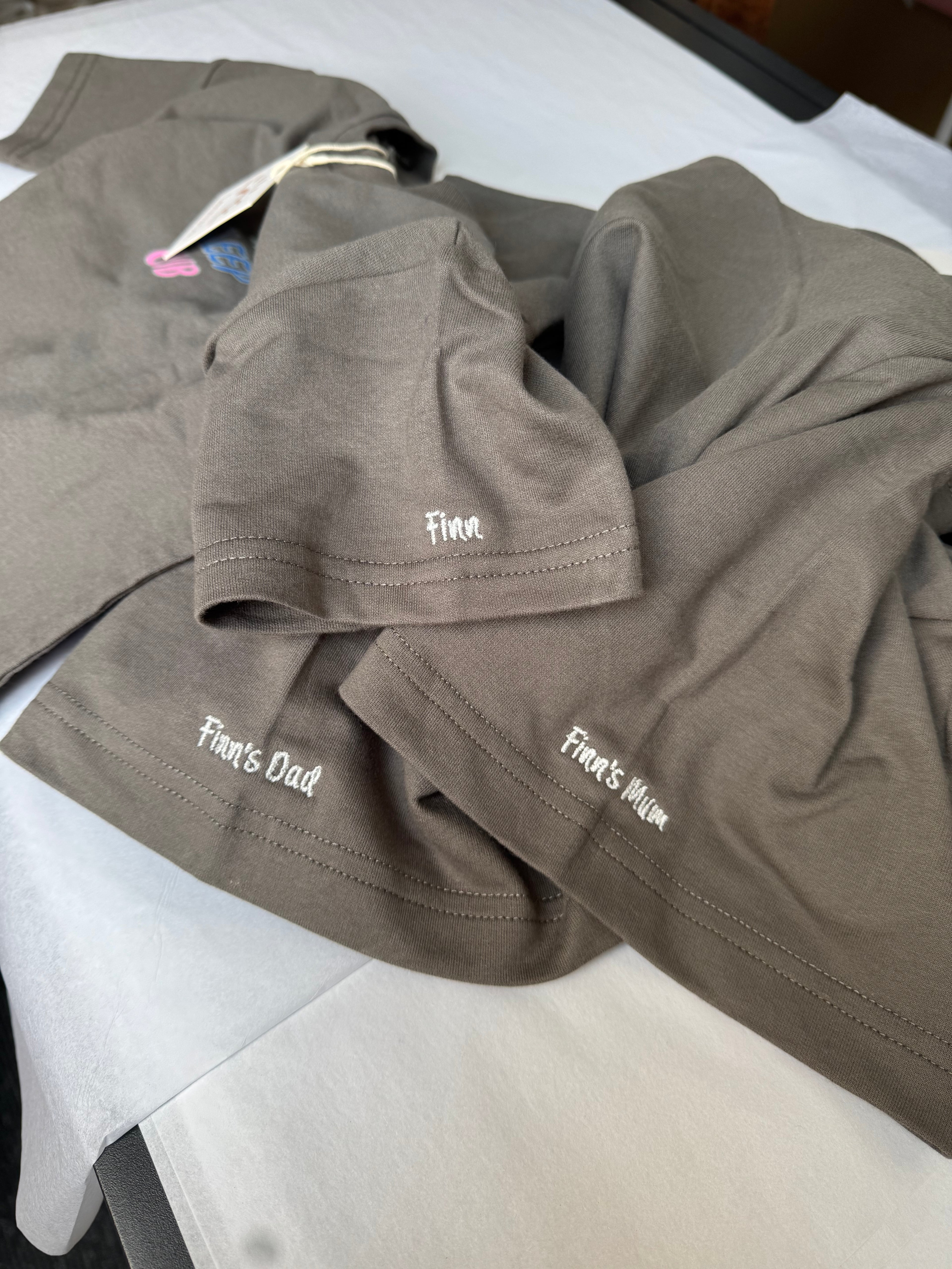 Up your gift game with personalised sleeve embroidery on all tees and jumpers!